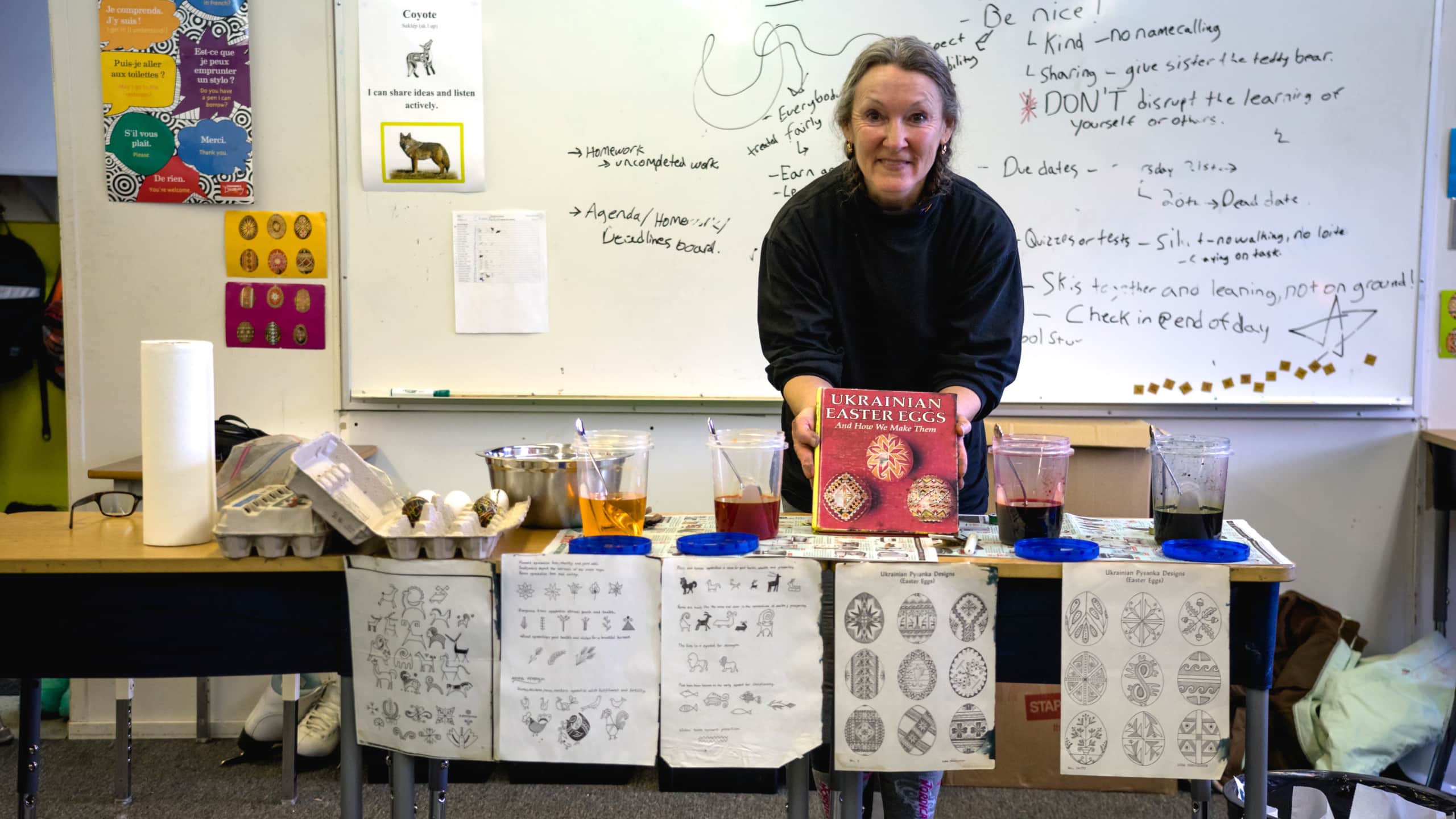 Earlier this month I was delighted to receive an invitation to a traditional Ukrainian egg coloring workshop, called a Pysanky. The event was hosted by Angela Sarakula at the Sun Peaks Elementary School for a lucky class of Grade 6 and 7 students.