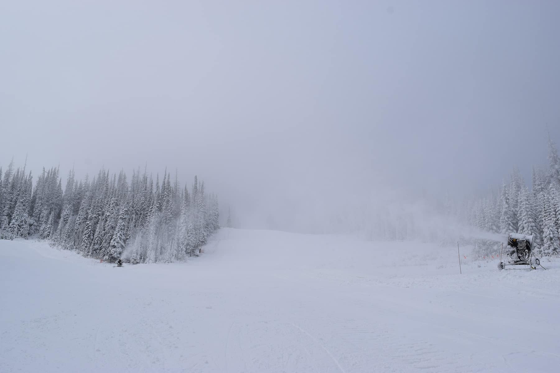 Sun Peaks Resort LLP (SPR), has up to 25 snow guns working at once to blanket slopes, said SPR slopes manager Seth Worthen. The crew of 15 snowmaking experts begins mid-October when temperatures drop and works around the clock to get the mountain ready for mid-to-late November.