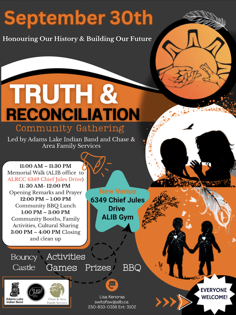 In the spirit of connecting and learning on behalf of Sun Peaks Mountain Resort Municipality, Mayor Rob O’Toole will join the inaugural collaborative truth and reconciliation event co-hosted and organized by Adams Lake and the Village of Chase, right in the heart of town.